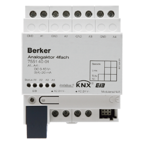 Berker 75514001 Аналоговое исполнительное устройство, 4-канальное, светло-серое