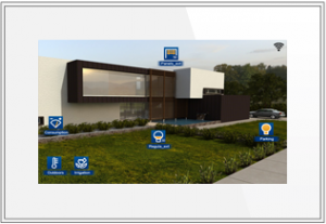 Имеет 16 страниц для размещения значков, 3D-чертежей, графиков, изображений и т.д. Возможно контролировать элементы установки с помощью 3D-чертежей. Интуитивное программирование сценариев и годовых событий. Возможность включения/выключения будильника, активации симуляции присутствия, проверки прогноза погоды, использования в качестве графической доски и т.д.