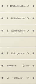Gira 220601 Набор клавиш 6-местный (3+3), гравировка, цвет: Белый, оттенок: Глянцевый, кремовый