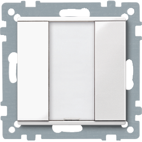 Со встроенным шинным соединителем. Кнопочный выключатель с 2 клавишами, индикатором рабочего состояния и полем для надписи. Индикатор рабочего состояния можно использовать в качестве подсветки для ориентации. Прибор соединяется с шиной через соединительную клемму шины.