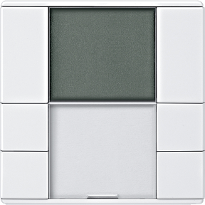 Функции кнопочных выключателей: Включение, переключение, светорегуляция, управление жалюзи (относительное или абсолютное), срабатывание по импульсам 1-, 2-, 4- или 8-битовых телеграмм (различие в кратком/длительном нажатии), срабатывание по импульсам 2-байтовых телеграмм (различие в кратком/длительном нажатии), 8-битовый линейный регулятор, вызов световых сцен, сохранение в памяти световых сцен, функции блокировки, управление по времени с синхронизацией, функции оповещения, периодический сбор значений температуры от внешних датчиков, управление вентилятором, выбор режимов работы, изменение уставок.