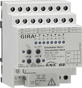 Gira 103700 Реле Устройство управления жалюзи 8/4 канальное 16 А, с ручным управлением, цвет: REG plus