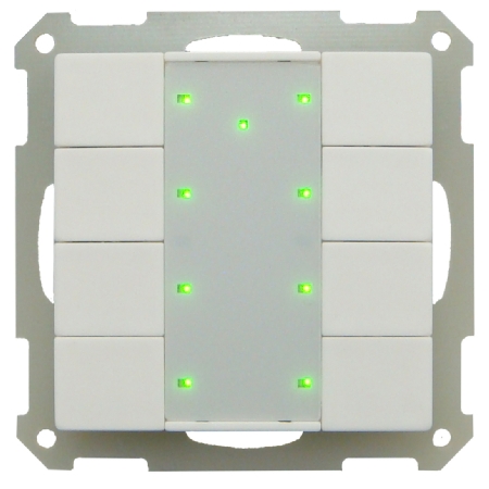 Кнопочный выключатель KNX/EIB 4x канальный (8 кнопок), 55 x 55мм, встроенный интерфейс KNX (BCU), двухцветная LED индикация, фоновая подсветка, цвет матовый белый.