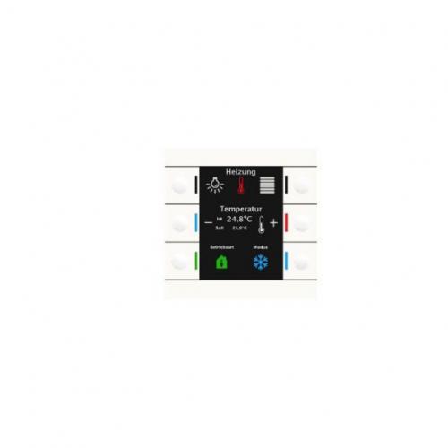 Автоподстройка яркости дисплея, объект день/ночь, выбор цвета фона белый/черный, функция шлепка, RGB индикация статусов, 86x86 мм, белый пластик.