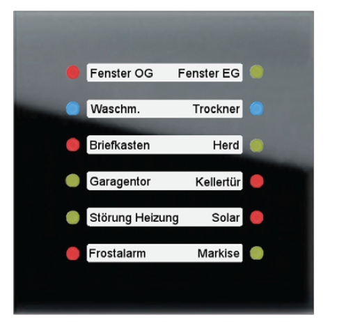 Индикаторный модуль KNX/EIB 12х канальный, три цвета индикации (RGB) на канал, до 8 логических модулей, регулировки яркости, черное стекло, в установочную коробку, 92x92x28 мм, IP20