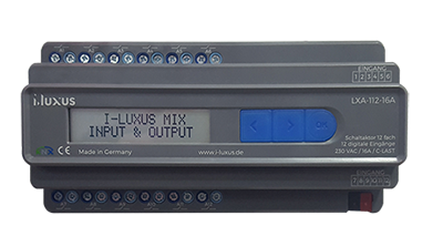 Привод I-Luxus 12 Gang KNX оснащен 12 цифровыми входами с сухими контактами и светодиодным дисплеем. Он может быть использован для переключения, управления жалюзи, и вентиляцией. Каждый канал может поддерживать нагрузку до 16 А C-характеристики и переменного тока 230 В.