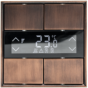I-Luxus 4 Gang KNX Термостат с емкостным сенсорным экраном можно использовать для переключения, затемнения, управления затвором и жалюзи. Поддерживаются такие функции HVAC, как охлаждение и обогрев или управление фанкойлом. Значения встроенного датчика температуры и влажности отображаются на ЖК-экране. Кроме того, могут быть добавлены встроенный датчик окружающей среды и датчик освещенности. Все параметры можно изменить с помощью ETS и периодически отправлять на шину KNX.