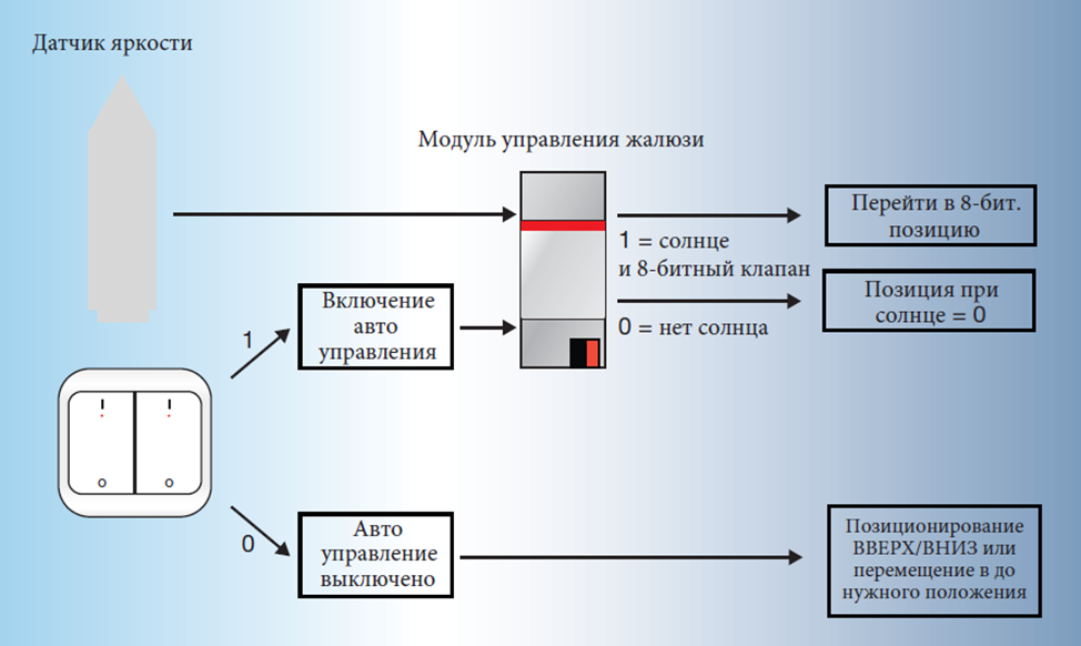 Функциональная схема управления жалюзи в зависимости от положения солнца