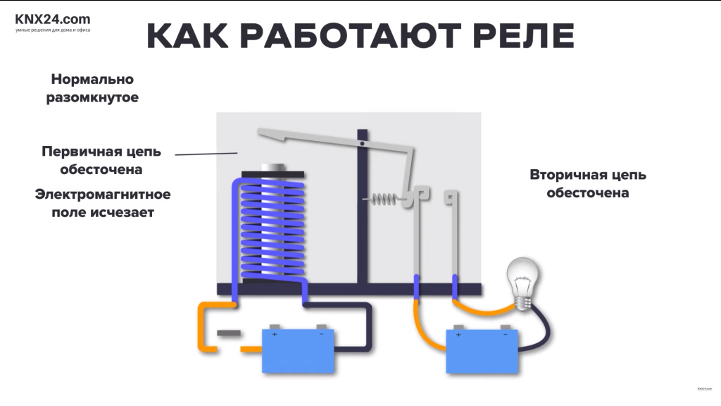 В реле есть две основные цепи: первичная и вторичная. Первичная цепь обеспечивает управляющий сигнал для приведения в действие реле. Это можно контролировать, например, при помощи ручного переключателя, термостата или датчиков самых разных типов.