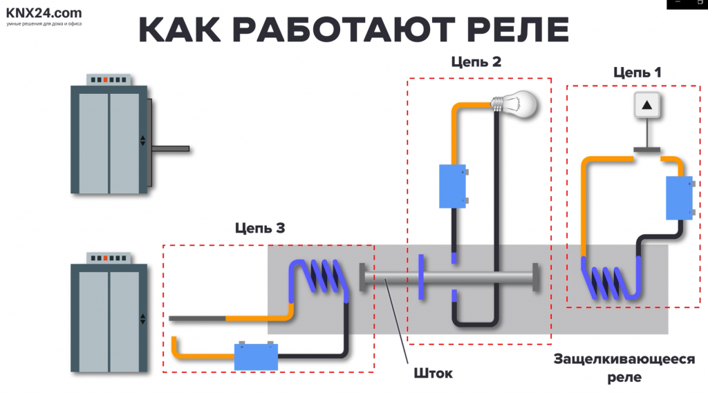 За время развития технологии интеллектуальных зданий реле стали использовать совместно с контроллерами с программируемой логикой. Основная роль реле – управление различными функциями умного здания: включение и выключение их.