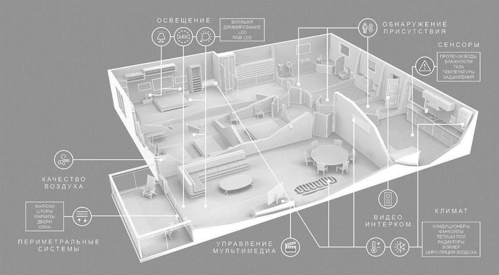 Как уже было упомянуто, современный умный дом объединяет и управляет всеми инженерными системами здания: