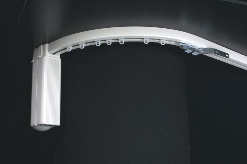 В случае сложной геометрии помещений и угловых окон, можно изготовить карниз с изгибом. Минимальный радиус поворота не будет равен 90 градусам. По нему должна свободно проходить каретка, тянущая штору. В таком случае, минимальный радиус изгиба карниза зависит от возможности бегунка проходить «поворот».