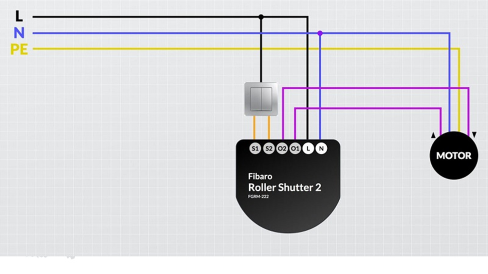 Управление моторизованными жалюзи по фазе основывается на следующих подключениях: Фаза для открытия, фаза для закрытия, нейтраль и (опционально) постоянно присутствующая фаза.
