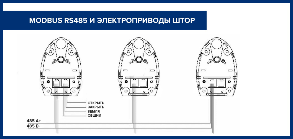 К тому же, моторизованными механизмами штор, поддерживающими Modbus можно управлять и с помощью сухих контактов и по фазе.