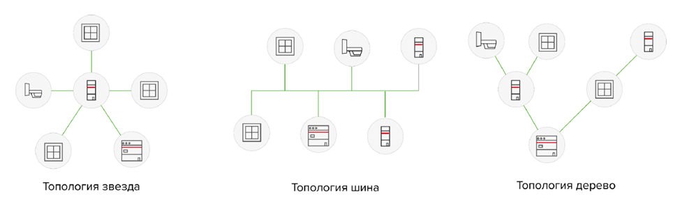 В системе умный дом KNX доступны различные топологии, такие как звезда, шина и древо. Закольцованная топология недопустима.
