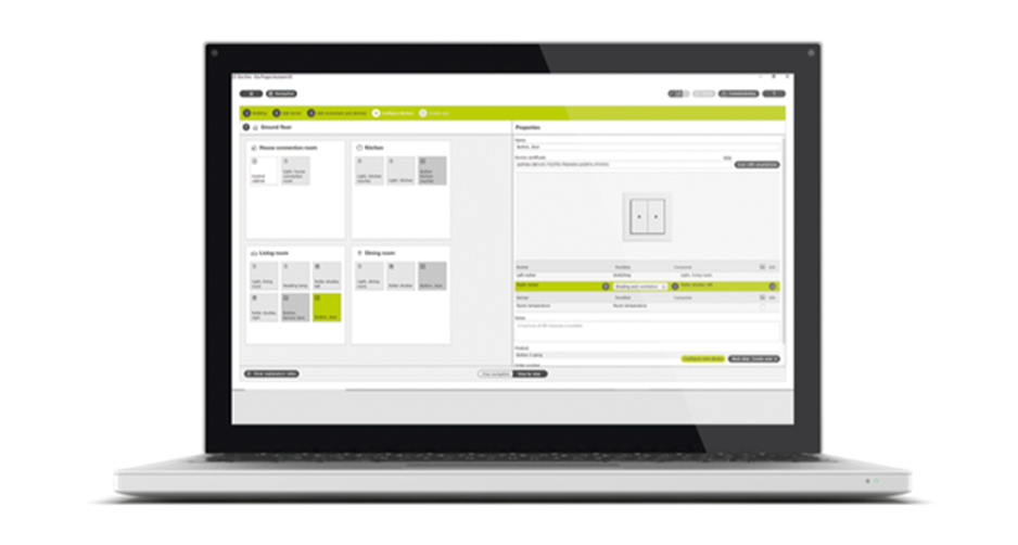 Gira One Smart Home system можно легко настроить, используя бесплатное ПО Gira Project Assistant (GPA): это гибкий и понятный помощник в настройке системы. Помимо прочего, GPA предоставляет пошаговое руководство и видеоуроки, которые помогают справиться со всем процессом настройки. Его можно использовать для подготовки проекта дома на компьютере без необходимости физического присутствия устройств Gira One. Выбранные настройки легко копируются на устройства в будущем, уже на объекте. GPA автоматически генерирует индивидуальную и понятную документацию, что упрощает передачу системы клиенту.